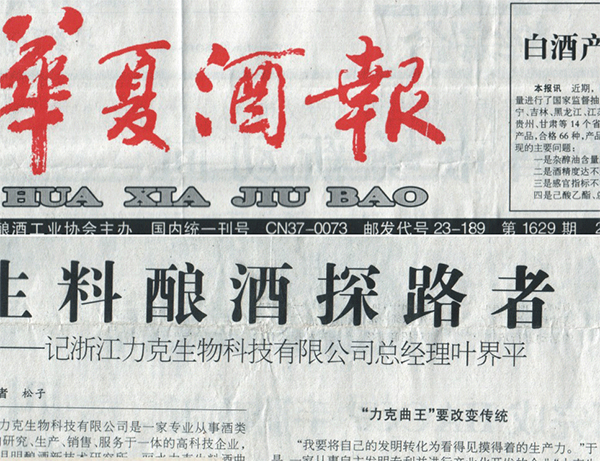 華夏酒報(bào)報(bào)道力克總經(jīng)理葉界平為生料釀酒探路者